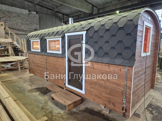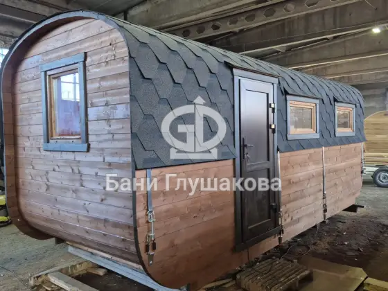 Гибрид «Кареты» и «Буханочки» из одного из лучших на рынке материалов – термированной бочковой доски, – и с утеплённым герметичным полом.