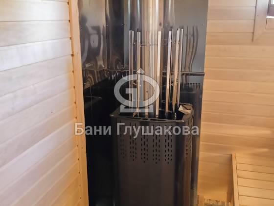 Представляем новый объект из линейки «Бурже» — современную просторную баню размером 4×8 метров с угловой террасой и выносной топкой. Благодаря продуманной планировке и большим размерам эта баня легко превращается в полноценное место для отдыха, где хватит места и для семьи, и для друзей.