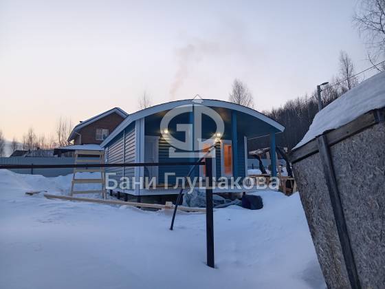 Синий цвет фасада — смелое и удачное решение. Он отлично контрастирует с зимним пейзажем и выделяет баню на фоне стандартных деревянных построек. Сейчас мы завершаем последние штрихи и готовим объект к сдаче владельцам.
