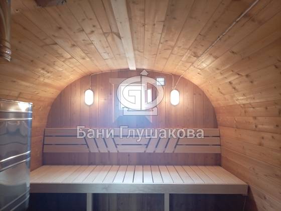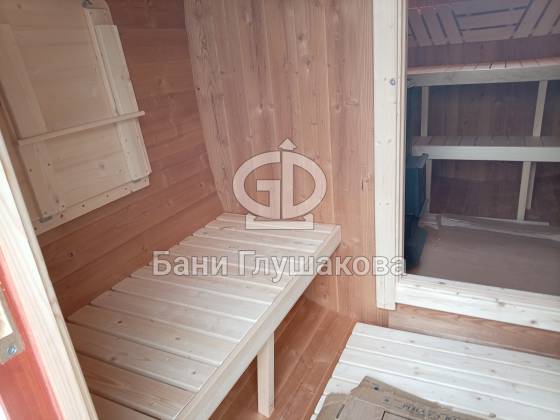 Внутри всё по делу: предбанник с откидным столиком, где можно спокойно посидеть с чаем, и парная с удобными полками и спинками. Печка, бак, электрика — всё уже на своих местах. Привезли на участок, поставили, и в этот же вечер вы уже в тепле. Никакой пыли, рабочих и растянутого на месяцы строительства.