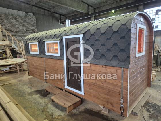 Гибрид «Кареты» и «Буханочки» из одного из лучших на рынке материалов – термированной бочковой доски, – и с утеплённым герметичным полом.