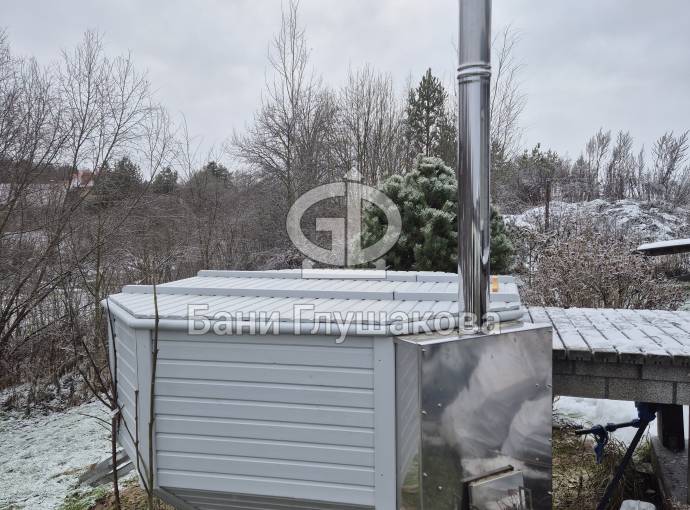 Чан укомплектован мощной наружной встроенной печью нашего производства. Печь ремонтопригодна! В случае неисправности её можно снять и отремонтировать или заменить, не разбирая купель.