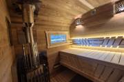 3. Большая парная: «Сердце» бани. Здесь установлена мощная печь ГИД 4, которая быстро прогревает помещение до нужной температуры и обеспечивает густой, качественный пар. Парная укомплектована удобными полками, позволяющими комфортно разместиться нескольким людям.