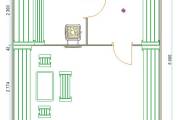 Стандартный размер проекта — 5×6 метров, однако габариты можно изменить под индивидуальные требования заказчика. Внутренняя планировка включает четыре помещения: просторную комнату отдыха, душевую, парную и отдельный санузел.