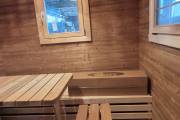 Большая парная: «Сердце» бани. Здесь установлена мощная печь ГИД 4, которая быстро прогревает помещение до нужной температуры и обеспечивает густой, качественный пар. Парная укомплектована удобными полками, позволяющими комфортно разместиться нескольким людям.
