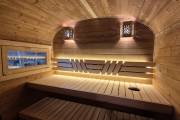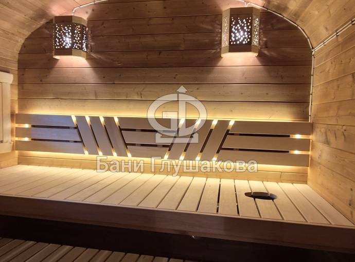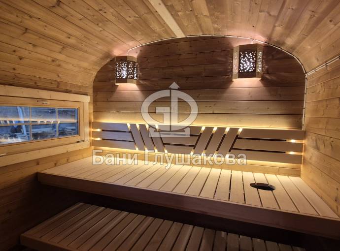 Материал корпуса: Баня изготовлена из термированной бочковой доски. Применение термодерева гарантирует стабильность геометрии конструкции, устойчивость к гниению и вредителям, а также придает древесине благородный оттенок и приятный аромат.