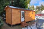Шестиметровая баня каркасной сборки из доски внахлёст. Всё уже сделано под ключ: внутри есть парная, комната отдыха и комфортное помещение с душем. Снаружи покрашена отличной краской Тиккурила. Кровля — Технониколь Шинглас с гарантией 25 лет от производителя.