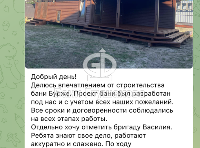 Видео в котором я рассказываю и показываю как будет выглядеть баня Бурже смотрите по ссылке.