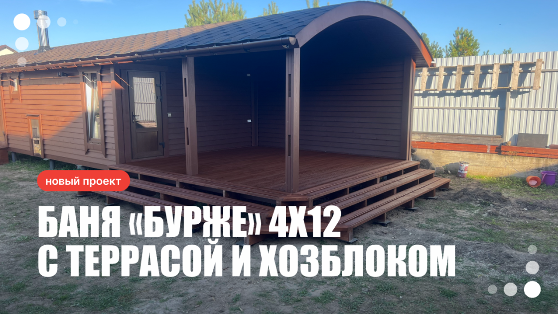 Баня «Бурже» 4×12 — это не просто баня, а целая зона отдыха на вашем участке.