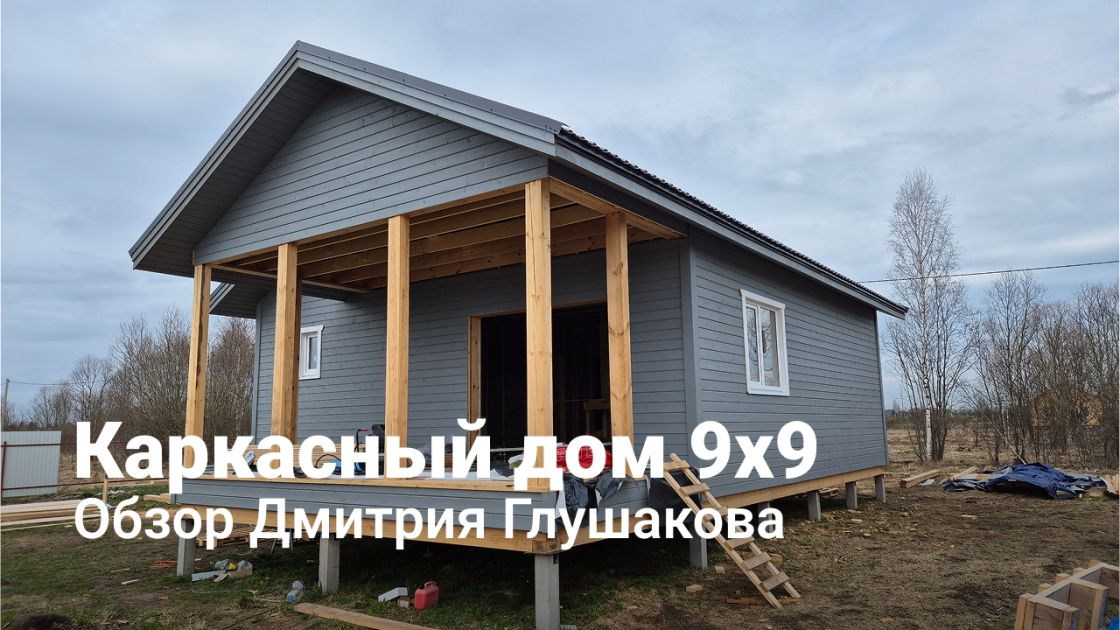 Каркасный дом 9х9 с двумя спальнями и террасой 3х6