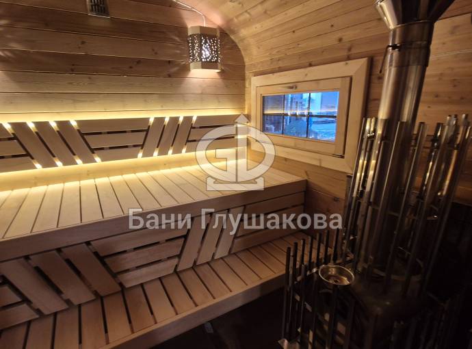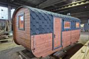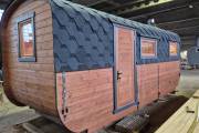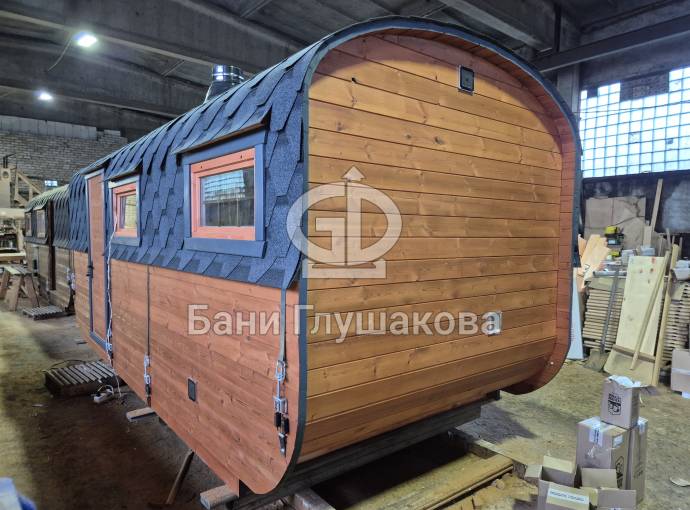 Баня «Карета» – это продвинутая вариация бани бочки, которая изготавливается из бочковой доски. Как правило, большинство бань мы изготавливаем из термомодифицированной доски.