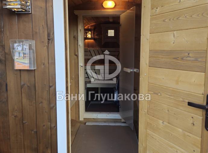 Симпатичная стандартная квадробочка №82500295 изготовлена 28 августа 2025 года. Баня сделана из отсортированной термодоски с небольшими косметическими изъянами.