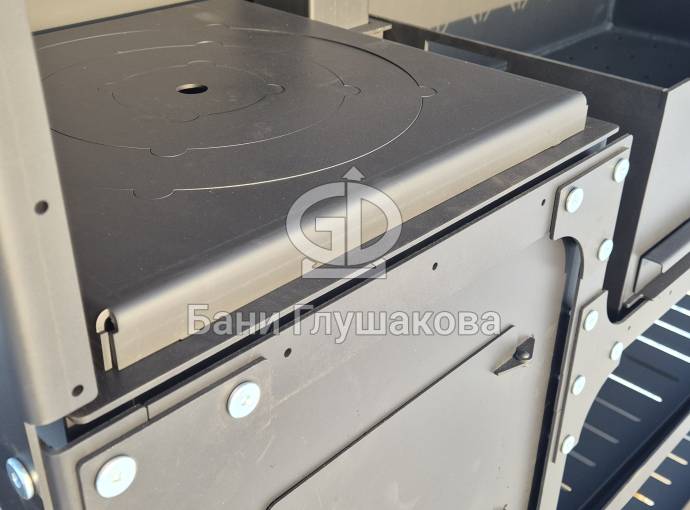 Мангал с печью «два в одном»: С левой стороны расположена полноценная варочная поверхность с конфорками разного диаметра. Это идеальный мангал под казан, где можно точно регулировать интенсивность жара для правильного томления блюд.