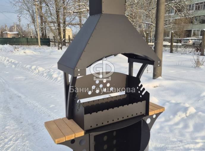 Этот мангал спроектирован как функциональное продолжение архитектурной линейки бань «Бурже». В основе модели лежит сочетание промышленной надежности и эстетики плавных линий, реализованных с помощью высокоточной лазерной резки металла.