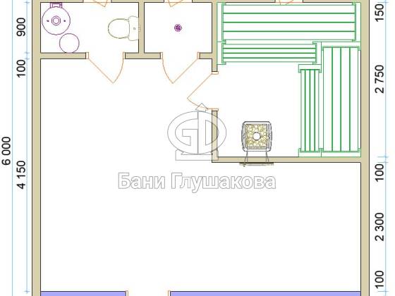 Проект был разработан в 2016 году и моментально стал самым продаваемым. Баню можно построить в каркасном или брусовом варианте. Авторское право №016-005986.