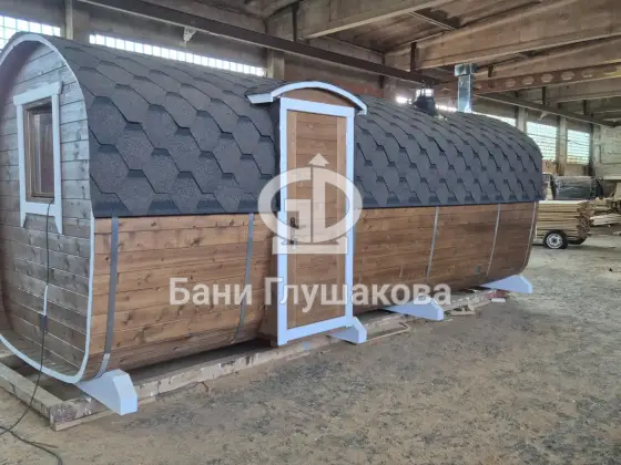 Гибрид «Кареты» и «Буханочки» из одного из лучших на рынке материалов – термированной бочковой доски, – и с утеплённым герметичным полом.